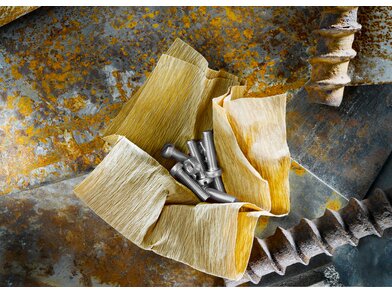 VCI-Papier wirkt unbeschichtet in beide Richtungen, ist nitritfrei und kann zu 100% recycelt werden.