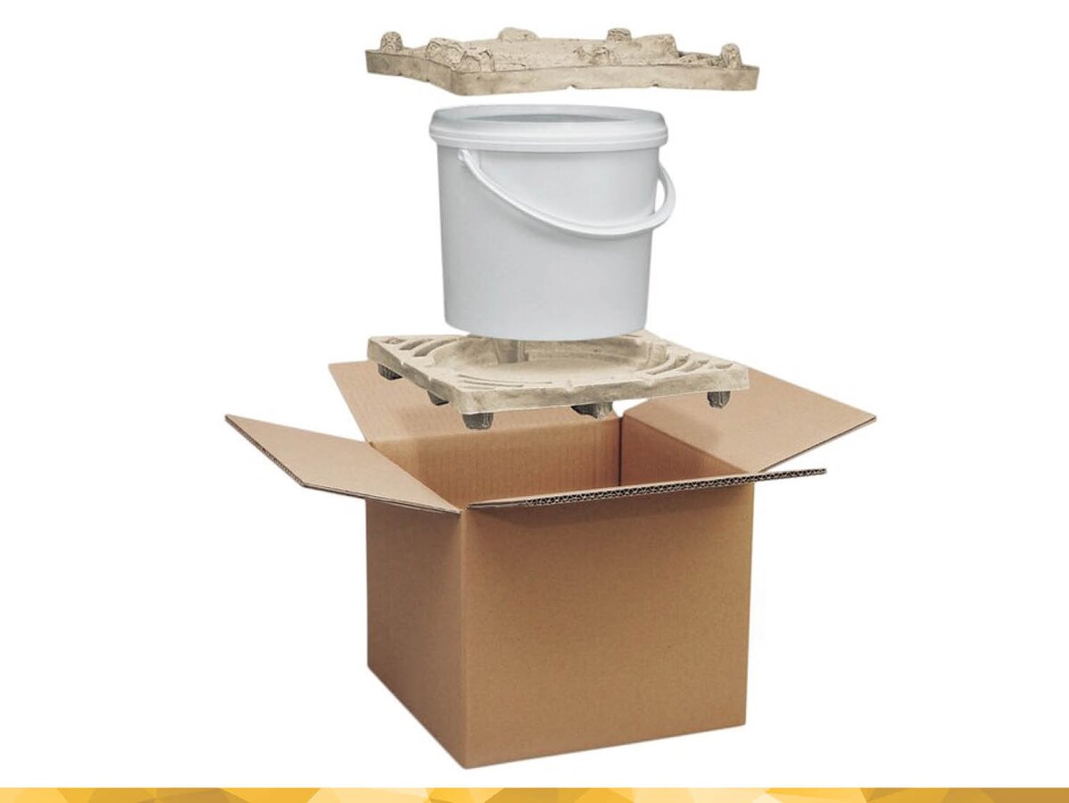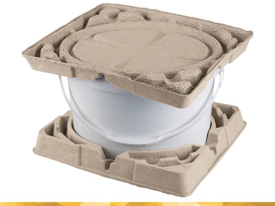 Durch passgenau entwickelte Verpackungen aus Fasergussteilen kommen Ihre Produkte unbeschadet bei Ihren Kunden an. Obwohl Faserform sehr wenig Eigengewicht hat, weist die Verpackung eine hohe Stabilität auf. Der geschützte Dämpfungsmechanismus polstert effektiv, verhindert das Aufplatzen des Eimers ebenso wie ein ungewolltes Öffnen des Deckels im Falle eines Sturzes.